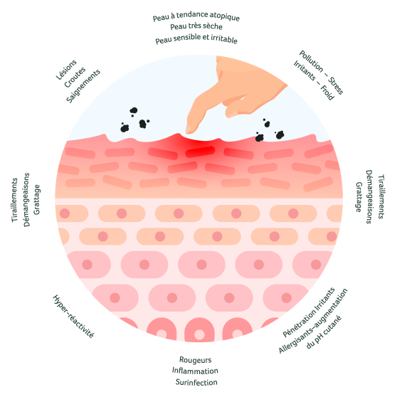 - une hypersensiblité aux facteurs irritants et agressions extérieures ;